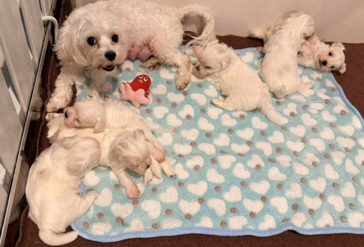 マルチーズのエルサちゃんの子どもたちが生後4週目を迎えました🎵 可愛らしい顔つきになってきましたね❤ 活発に動くようになってきて、きょうだいでワンプロをして遊ぶのが日課です🎵 「お …