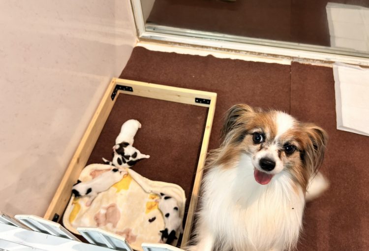 パピヨンのハープちゃんが出産しましたのでご報告デス!! 12月25日生まれ 男の子×2 女の子×2 の4頭きょうだいデス!! 毛色はお母さんと同じですが、柄がそれぞれ! 白が多い子 …