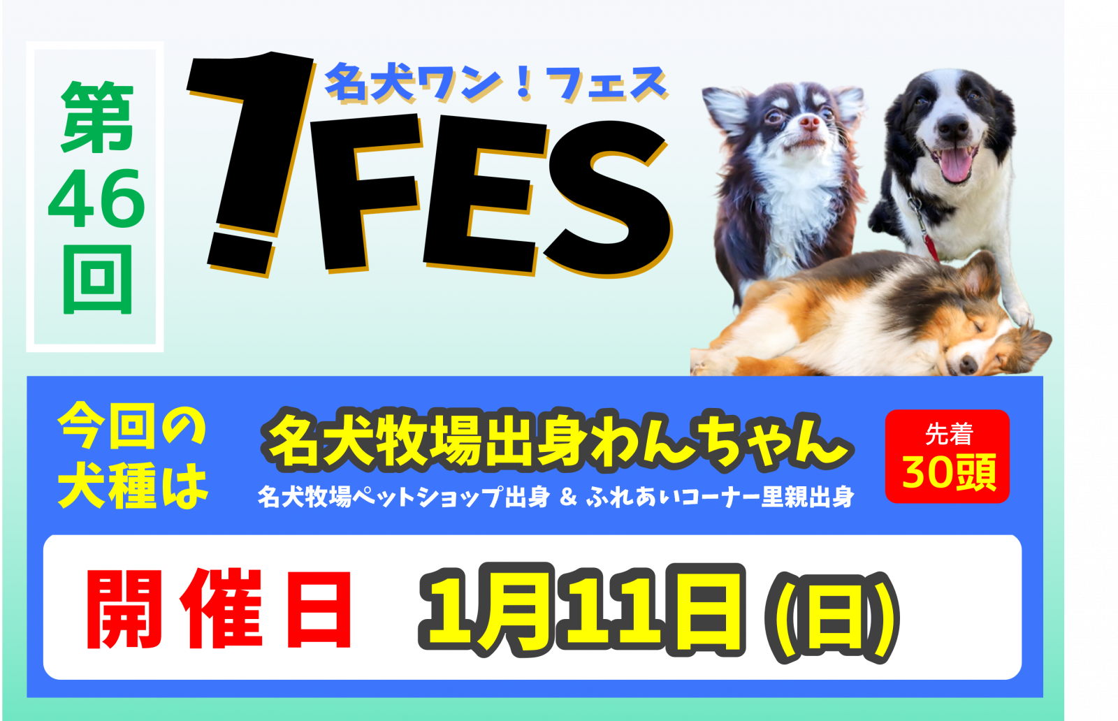 来週(1月12日~1月18日)の世界の名犬牧場のご案内