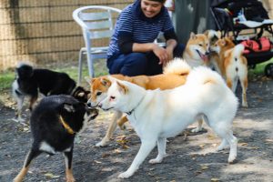 ワンちゃんとふれあう